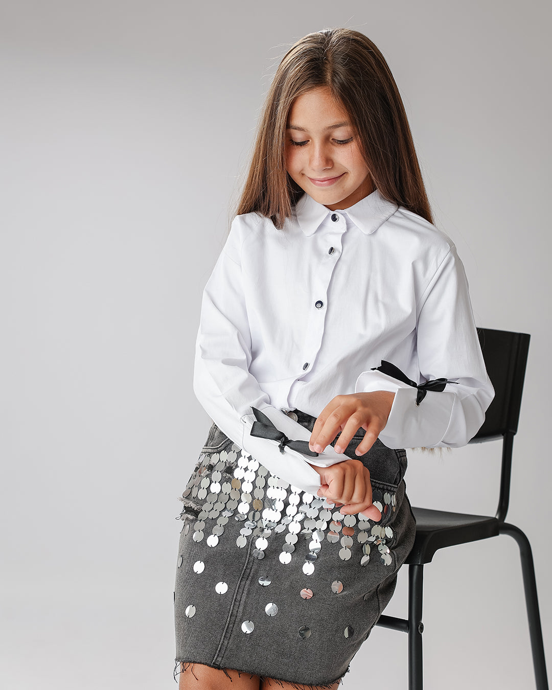 Camicia con manica japan e fiocco arricchita con bottoni gioiello