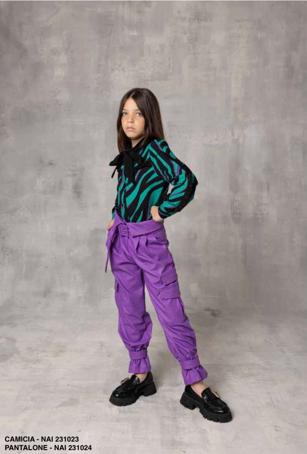 Pantalone cargo in ecopelle NAICE con tasconi laterali , bustino in vita, e cinturino sul fondo.