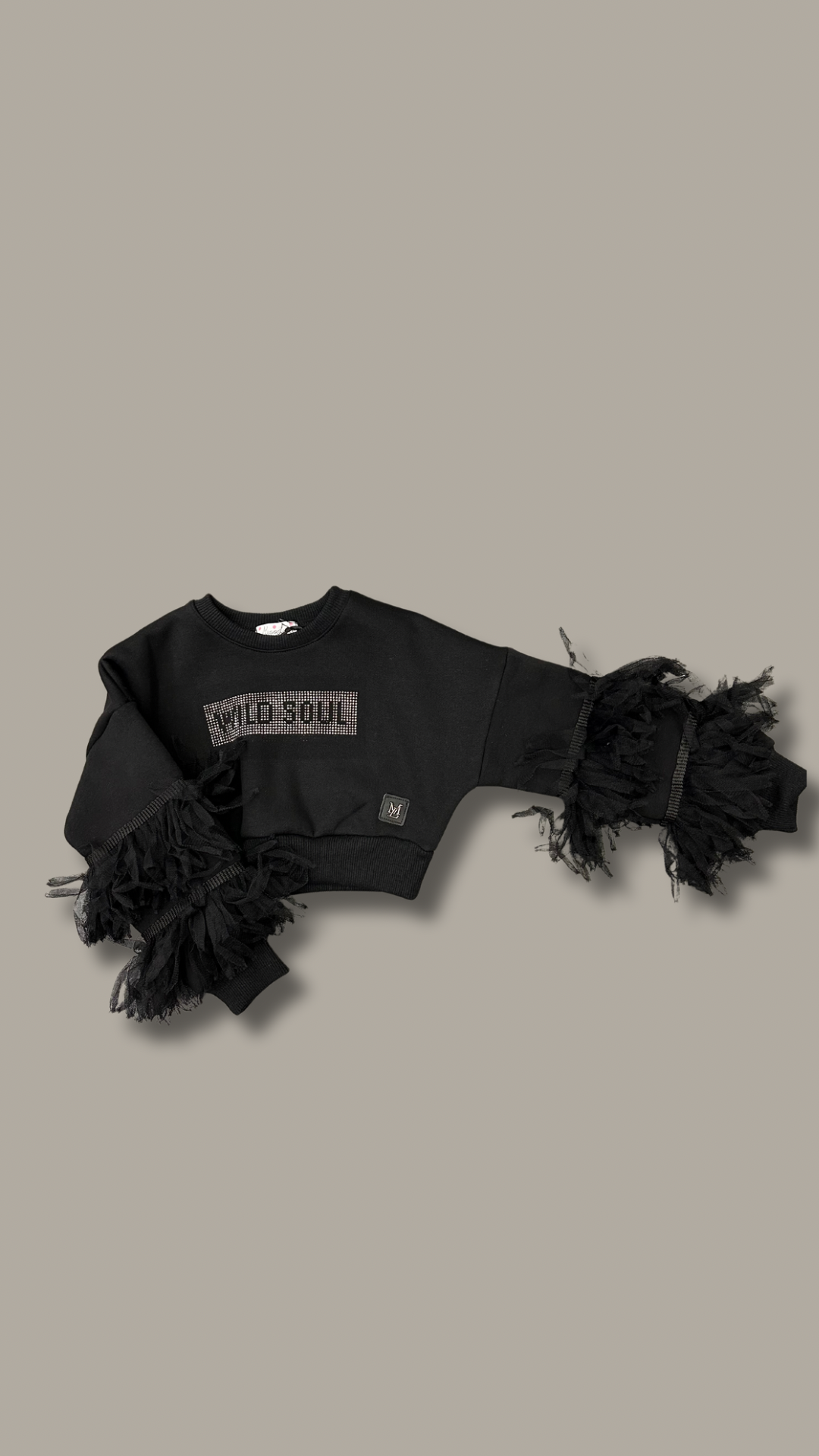 Felpa nero con dettagli in tulle sulla manica