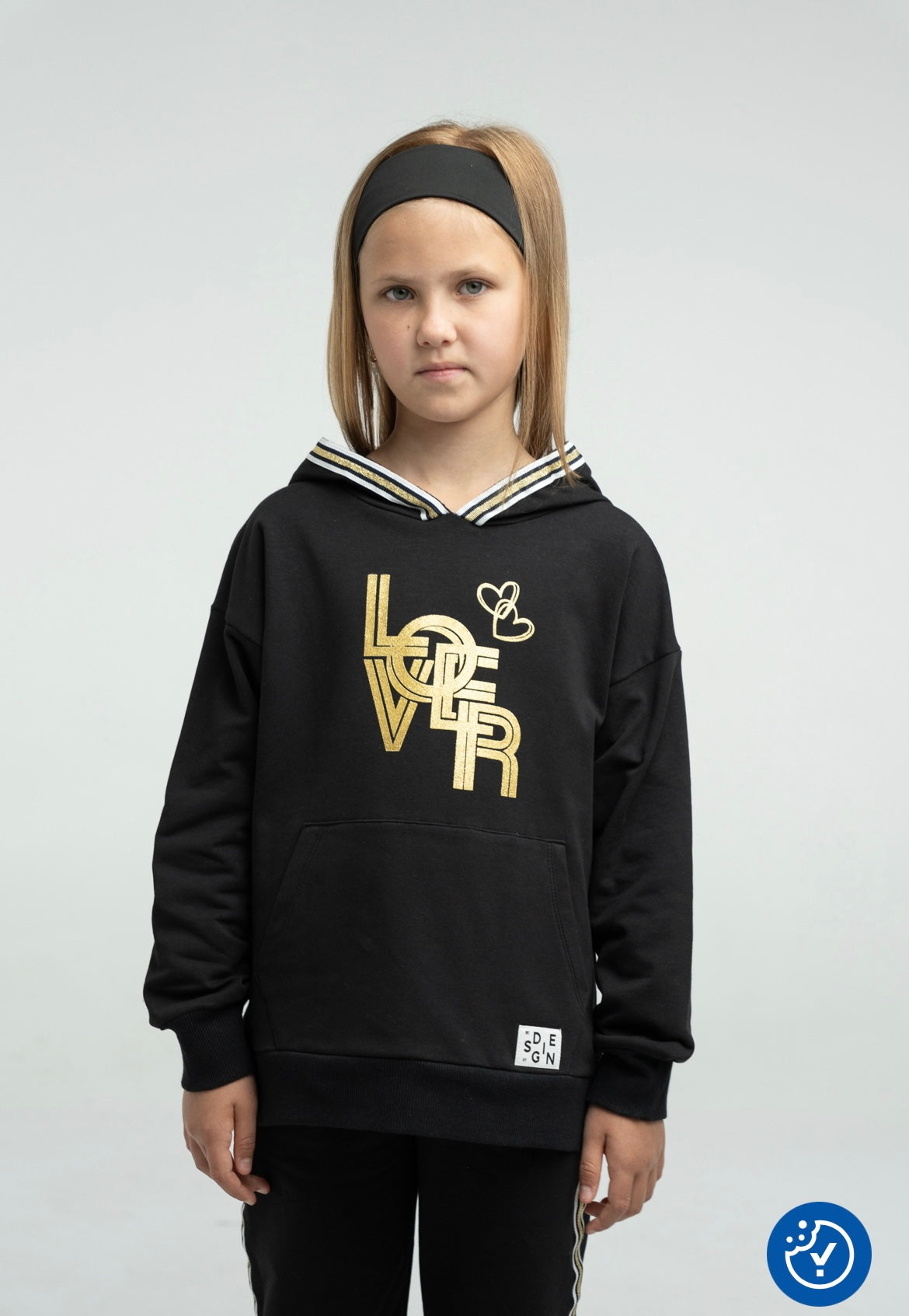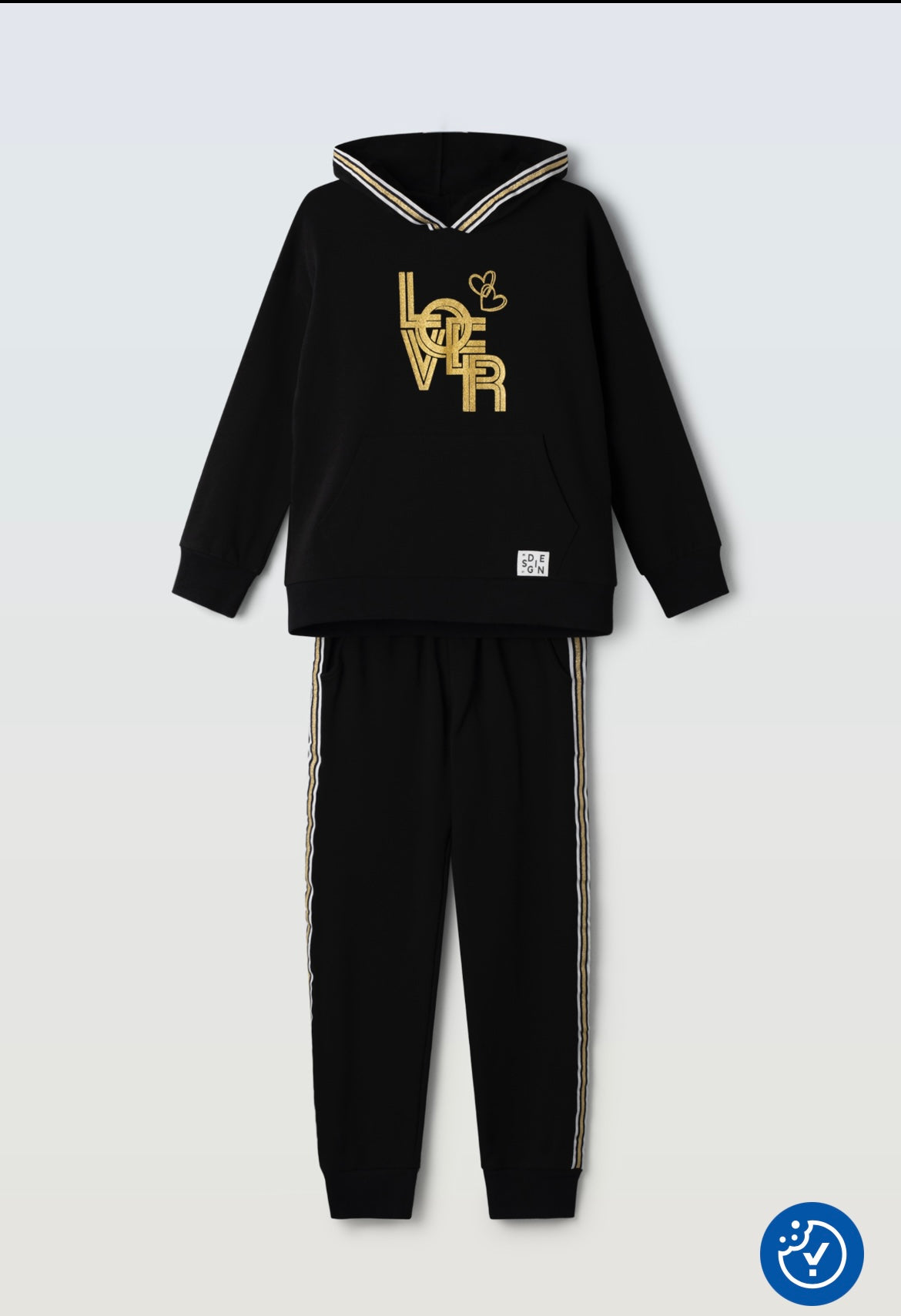 Tuta composta da pantalone fondo elastico e felpa con cappuccio