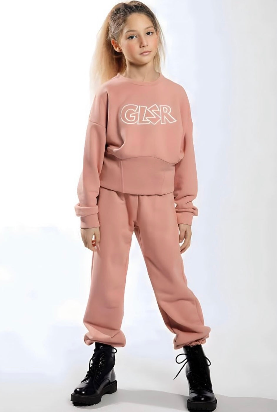 tuta in cotone garzata , con scritta logata sul petto in rilievo